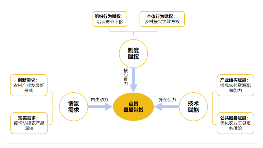 相較于以往貧困縣推介自身特色產品,主要是參與電商系統鏈條發展(如淘寶扶貧項目等),如今的直播,在快速便捷的前提下,探尋更為直觀的銷售模式,政府的助力更是打通政策對接、信息溝通和信任屏障的有效橋梁。