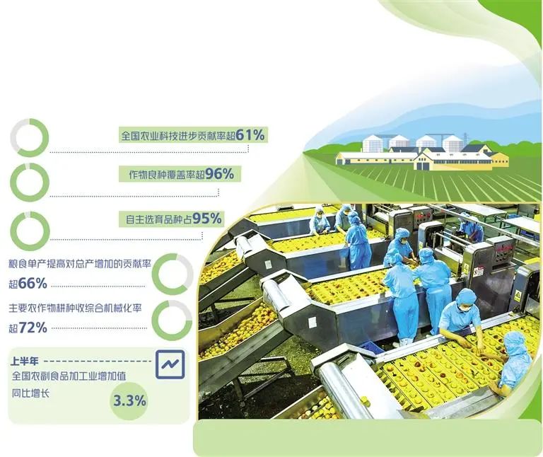 農業農村部最新數據顯示,全國農業科技進步貢獻率超過61%,作物良種覆蓋率超過96%,自主選育品種占95%,糧食單產提高對總產增加的貢獻率超過66%,主要農作物耕種收綜合機械化率超過72%,農業科技已成為引領農業農村現代化的強勁引擎。10年間,我國農業科技水平已從世界第二方陣邁入第一方陣,處于發展中國家領先地位。