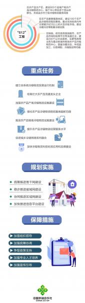 《規(guī)劃》內(nèi)容包含六個部分,從構(gòu)建全國供銷合作社農(nóng)產(chǎn)品冷鏈物流骨干網(wǎng)、供銷合作社農(nóng)產(chǎn)品冷鏈物流省域網(wǎng)、供銷合作社農(nóng)產(chǎn)品冷鏈物流區(qū)域網(wǎng)與全國供銷合作社農(nóng)產(chǎn)品冷鏈物流公共服務(wù)信息平臺進(jìn)行總體布局,并設(shè)立了供銷合作社系統(tǒng)公共型農(nóng)產(chǎn)品冷鏈物流建設(shè)工程(“612”工程)、供銷合作社農(nóng)產(chǎn)品冷鏈物流先行省省域網(wǎng)建設(shè)工程兩個專欄。提出了建立全系統(tǒng)冷鏈物流發(fā)展運(yùn)行機(jī)制、培育壯大農(nóng)產(chǎn)品流通龍頭企業(yè)、加強(qiáng)農(nóng)產(chǎn)品產(chǎn)地冷鏈物流設(shè)施建設(shè)、強(qiáng)化農(nóng)產(chǎn)品冷鏈物流樞紐基地輻射功能、推進(jìn)農(nóng)產(chǎn)品銷地冷鏈物流設(shè)施建設(shè)、提升農(nóng)產(chǎn)品冷鏈物流經(jīng)營服務(wù)水平、促進(jìn)城鄉(xiāng)冷鏈網(wǎng)絡(luò)雙向融合、加快冷鏈物流科技標(biāo)準(zhǔn)應(yīng)用和品牌建設(shè)等8項(xiàng)重點(diǎn)任務(wù)。
