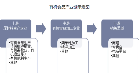 有機(jī)食品的產(chǎn)業(yè)鏈上游環(huán)節(jié)主題為有機(jī)食品原材料生產(chǎn)企業(yè),主要負(fù)責(zé)有機(jī)食品生產(chǎn)和有機(jī)肥料等投入品的生產(chǎn);中游環(huán)節(jié)主體為有機(jī)食品加工企業(yè),主要負(fù)責(zé)加工、儲存和運(yùn)輸;下游涉及銷售渠道,主要有商場、有機(jī)食品專賣店和電商平臺等,最終流向消費(fèi)者。