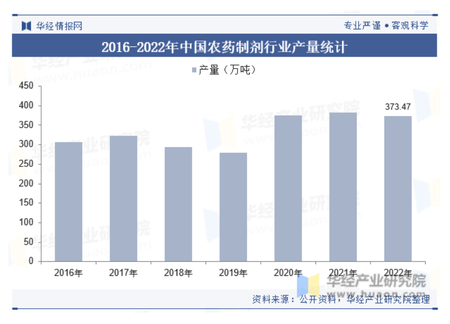 中國(guó)農(nóng)藥制劑產(chǎn)量近年來呈現(xiàn)出波動(dòng)增長(zhǎng)的趨勢(shì)。2022年我國(guó)農(nóng)藥制劑產(chǎn)量為373.47萬噸,同比下降2.1%。未來,隨著環(huán)保意識(shí)的提高和農(nóng)業(yè)現(xiàn)代化的推進(jìn),中國(guó)農(nóng)藥制劑行業(yè)將朝著環(huán)?;?、高效化、安全化的方向發(fā)展。