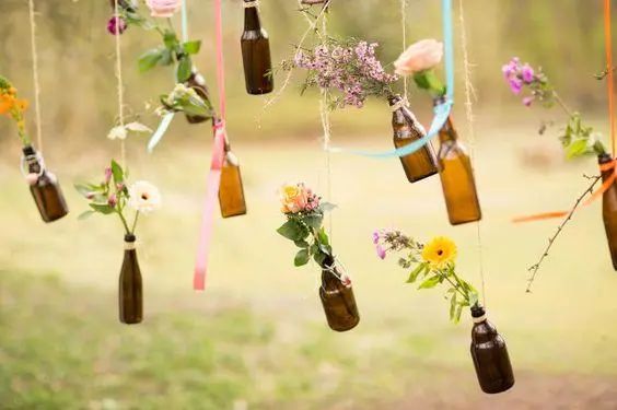 叮叮當當掛在樹上的精致玻璃瓶,一樣可以裝點也鮮花們,成為美麗的風景。