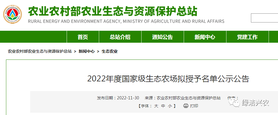 根據《農業農村部辦公廳關于印發〈推進生態農場建設的指導意見〉的通知》(農辦科〔2022〕4號)要求,在農業農村部科技教育司指導下,農業農村部農業生態與資源保護總站聯合中國農業生態環境保護協會開展了2022年度生態農場評價工作。經推薦申報、形式審查、材料初評、現場復核、綜合評議等程序,現將2022年度國家級生態農場擬授予名單(見附件)進行公示,公示期為2022年11月30日至12月6日。如有異議,請以書面形式反映。