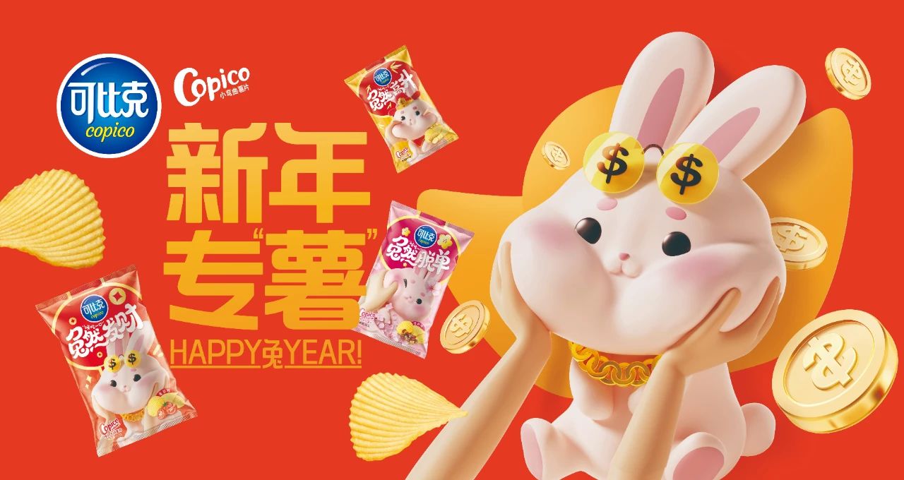 可比克是薯片品類的頭部品牌,近年來通過產品創(chuàng)新、營銷升級不斷強化品牌勢能。兔年新春來臨之際,可比克以“兔”這一生肖元素為靈感,推出兔年新春限定包裝。