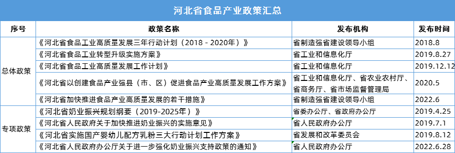 綜合比較河北省食品產業總體政策與專項政策可知,食品工業逐漸走向集群化、規模化、品牌化。奶業正在成為農業主導產業,乳制品產業正在成為食業主導產業,通過實施“千萬噸奶工程”,持續提升全產業鏈競爭力,全面實現奶業振興,在全國率先實現奶業現代化,奶源基地、乳品加工、乳品品質、乳品品牌整體水平進入世界先進行列。