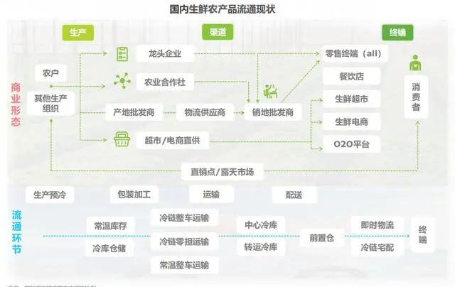 目前,巨頭們的布局覆蓋全鏈路,包括在上游的農產品生產環節、中游的流通物流環節、下游的零售終端。