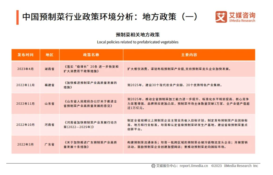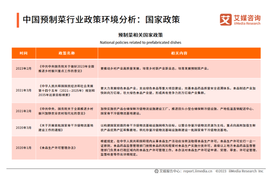 近年來,中國政府陸續出臺一系列法律法規,對食品生產、加工、流通環節進行規范,并建立了食品安全追溯機制,為預制菜行業提供了良好的發展基礎。