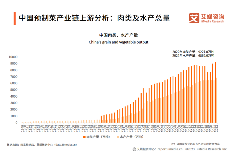 中國預制菜產業鏈上游分析:肉類及水產總量