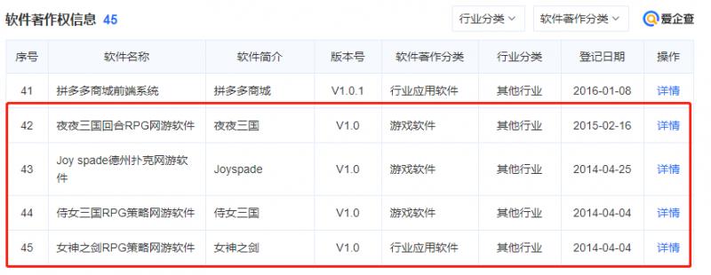 這里岔開說一句,黃崢的前兩次創業分別是一家手機電商公司和電商代運營公司,都為今天拼多多的崛起有著關鍵性作用,這個我稍后會講。說回上海尋夢這家游戲公司,他旗下的游戲大概有這些。