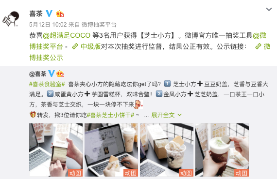 前段時(shí)間,喜茶搞了次微博抽獎(jiǎng),結(jié)果竟然抽到了對(duì)手COCO奶茶的粉絲。