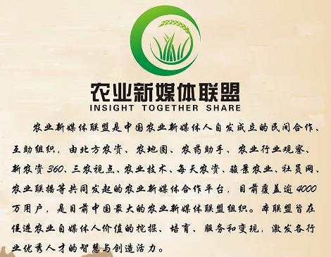 近日,由北方農資、農地圈、農業行業觀察、新農資360、三農視點、農藥助手、農業技術、駿景農業、每天農資、農業聯播、社員網等20家農業自媒體人共同發起的農業新媒體聯盟在北京成立。