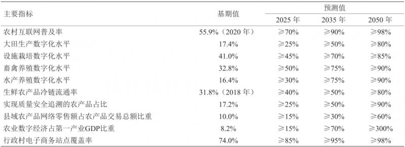 表 1 我國智慧農業發展的主要指標預測值
