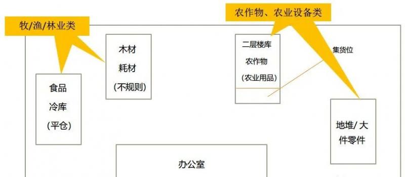 以村社為單位建立集中物理倉庫,不同品類進行不同庫區及庫位存放;