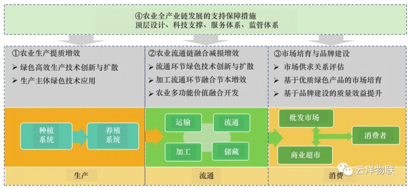 農業全產業鏈綠色發展以全產業鏈融合為主線,踐行綠色發展理念,堅持生態優先與環境友好原則;立足資源稟賦,開展產業升級、鏈接與融合,發展優勢明顯、特色鮮明的農業產業及產業集群,實現全產業鏈效率與產值協同提升。