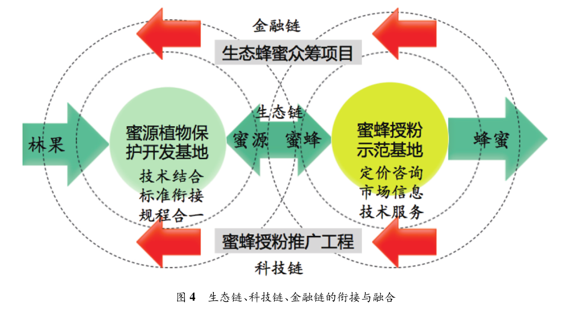 蜂產業鏈的生態鏈、科技鏈、服務鏈、信息鏈的深度融合、一二三產業融合與功能拓展