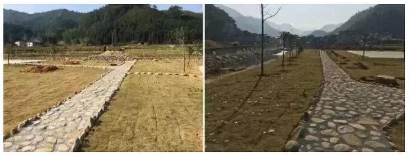 △長汀縣**村采用大片草坪,維護成本高