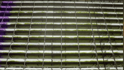 它通過(guò)一種名為”a-go-gro“的種植系統(tǒng),以每秒1毫米的速度自下而上旋轉(zhuǎn)正種植著菜心、芥蘭等作物的“蔬菜塔”,以保證塔架上每一層的植物都可獲得均勻的光照。