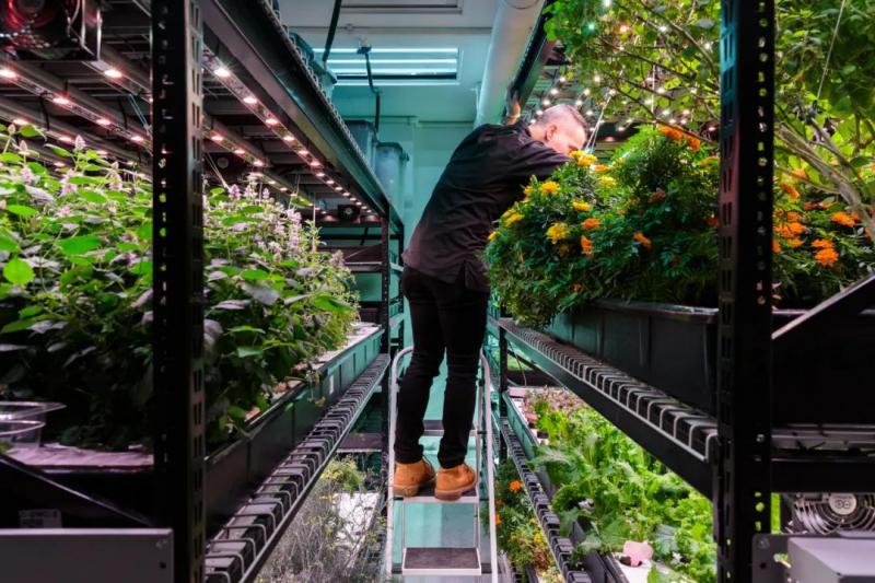 當世界上大部分的垂直農場還在堆挪“貨架”種菜時,曼哈頓一家米其林餐廳地下室的垂直農場,則成了“廚子們的后院”。