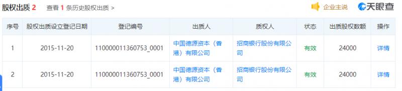 然而完成增資不到 8 個(gè)月,2014 年 11 月,德源資本便將持有的 2.4 萬(wàn)中石化銷售公司股份質(zhì)押給了招商銀行。